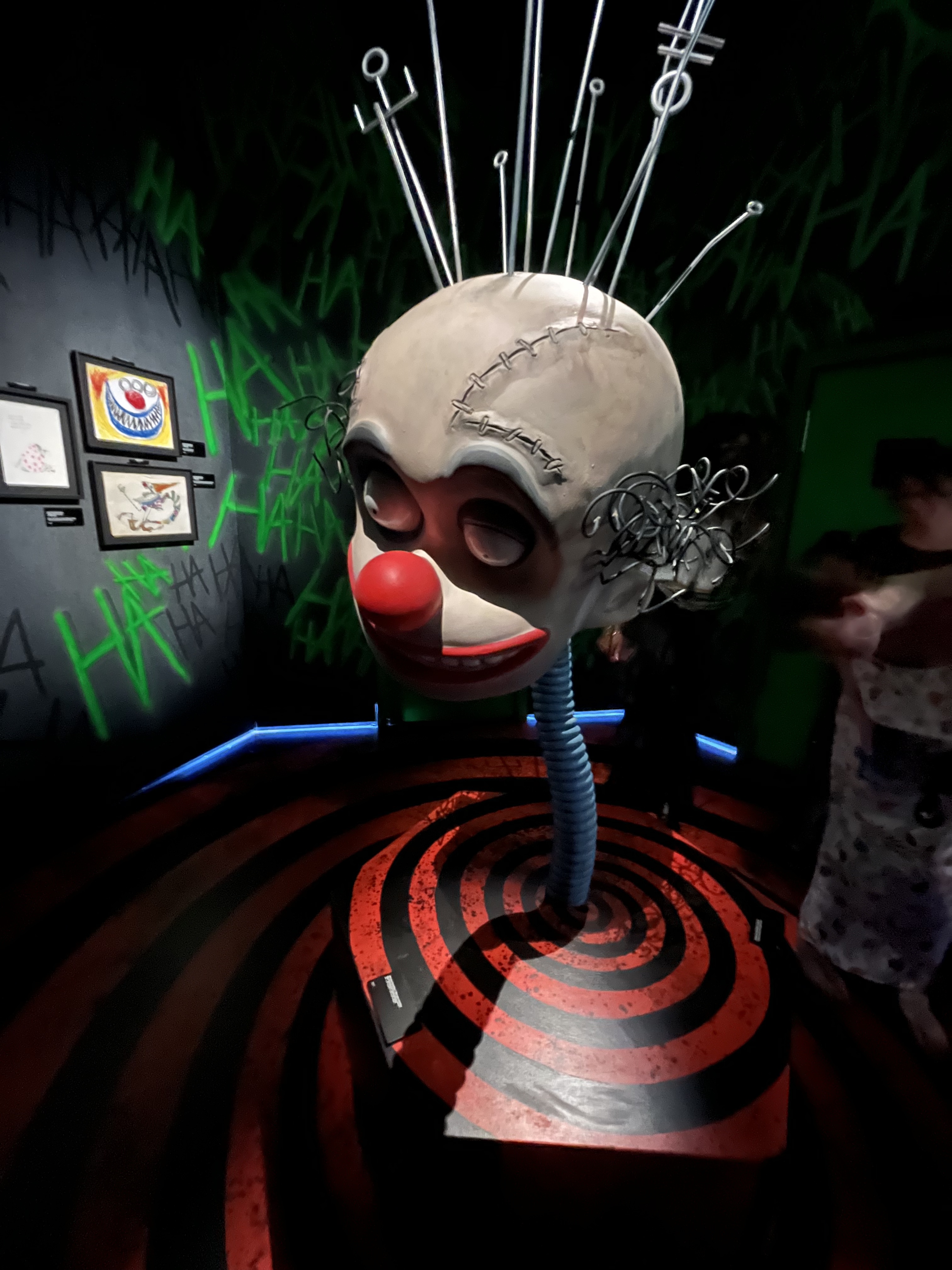 mon avis sur la couuuuurte visite : Accueil souriant du staff, puis : Tu ne touches rien (normal) tu ne photographies pas ce qui est en cadre noir(œuvres du Tim) pffff.. fais pas ci fais pas ça ! Ce n'est pas un labyrinthe, juste des portes à choisir pour changer de salle, EMERVEILLEMENT 🤩🤩🤩 les statues sont magnifiques mais aucune interaction, un peu triste quand même... c'est juste une petite expo et rien d'autre. A la fin tu penses acquérir des posters, des litho.... presque plus rien, Porte-clés serpent épuisés, cartes postales épuisées.... bref 1 stylo 5 euros histoire de. ... Mais côté merchandising y a du boulot ! Allez quelques photos histoires de partager ma grande joie un peu déçue 😞 J'attendais de vraies interventions de personnages, plus de .... bref, on te dit aussi attention aux épileptiques, aux effrayés par les clowns. ... à part le staff qui èrre de salle en salle pour nous surveiller.... rien d'effrayant ou qui fasse sursauter !