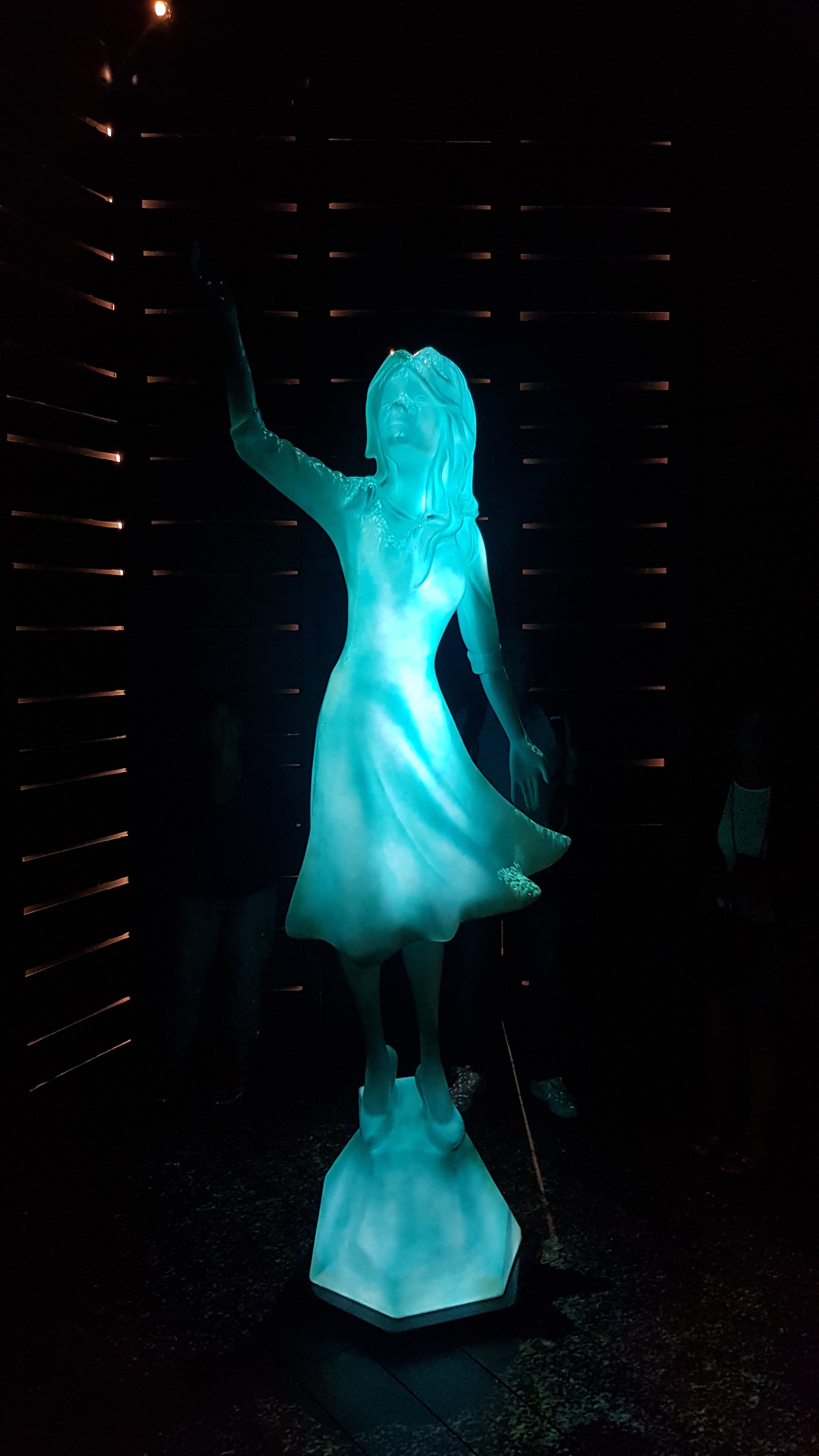 Une très belle exposition de Tim Burton, des très belles statues. Petit bémol : Les panneaux expliquant la façon de dessiner de M. Burton étaient très bien expliqués mais je trouve qu’on appuie trop sur ses sentiments et ce qu’il veut exprimer. On devrait davantage parler de sa vie (sociale) et son entourage. Car c’est important de voir si les gens étaient attirés uniquement par ses œuvres ou aussi par la personne qu’il était, autre qu’à l’aide de ses œuvres… 😉 Je rajoute aussi que le prix est un peu excessif pour l’entrée (ainsi que la boutique de souvenirs) et que le principe du « labyrinthe » n’est pas vraiment clair… c’est plus une visite guidée qu’autre chose. On doit appuyer sur un bouton et il nous choisit notre première porte; donc il nous choisit un parcours… Dommage qu’on ne puisse pas faire retour en arrière pour voir tout le tracé de sa carrière professionnelle. Les lumières et les effets sont très bien mis en scène pour attirer les regards sur les choses qu’on veut mettre en avant.